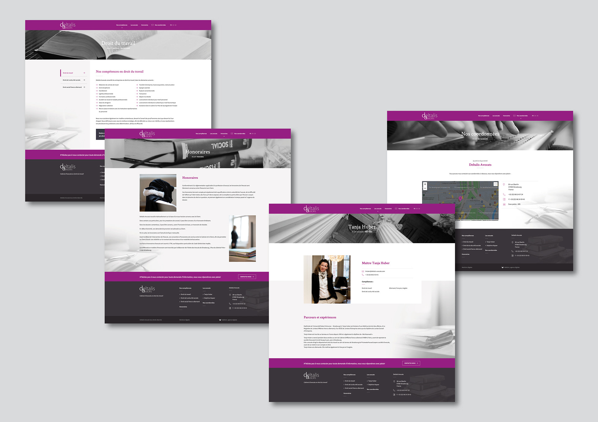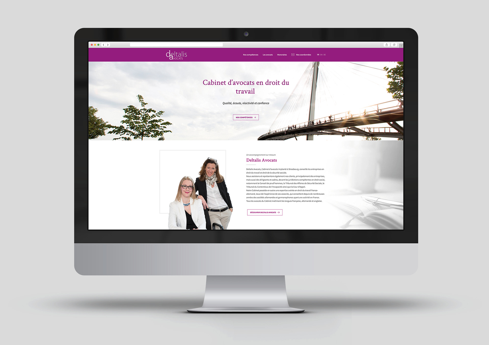 Pour ce nouveau cabinet d'avocats à Strasbourg, création du logotype avec sa déclinaison pour la papeterie et création du Web design pour un site vitrine.